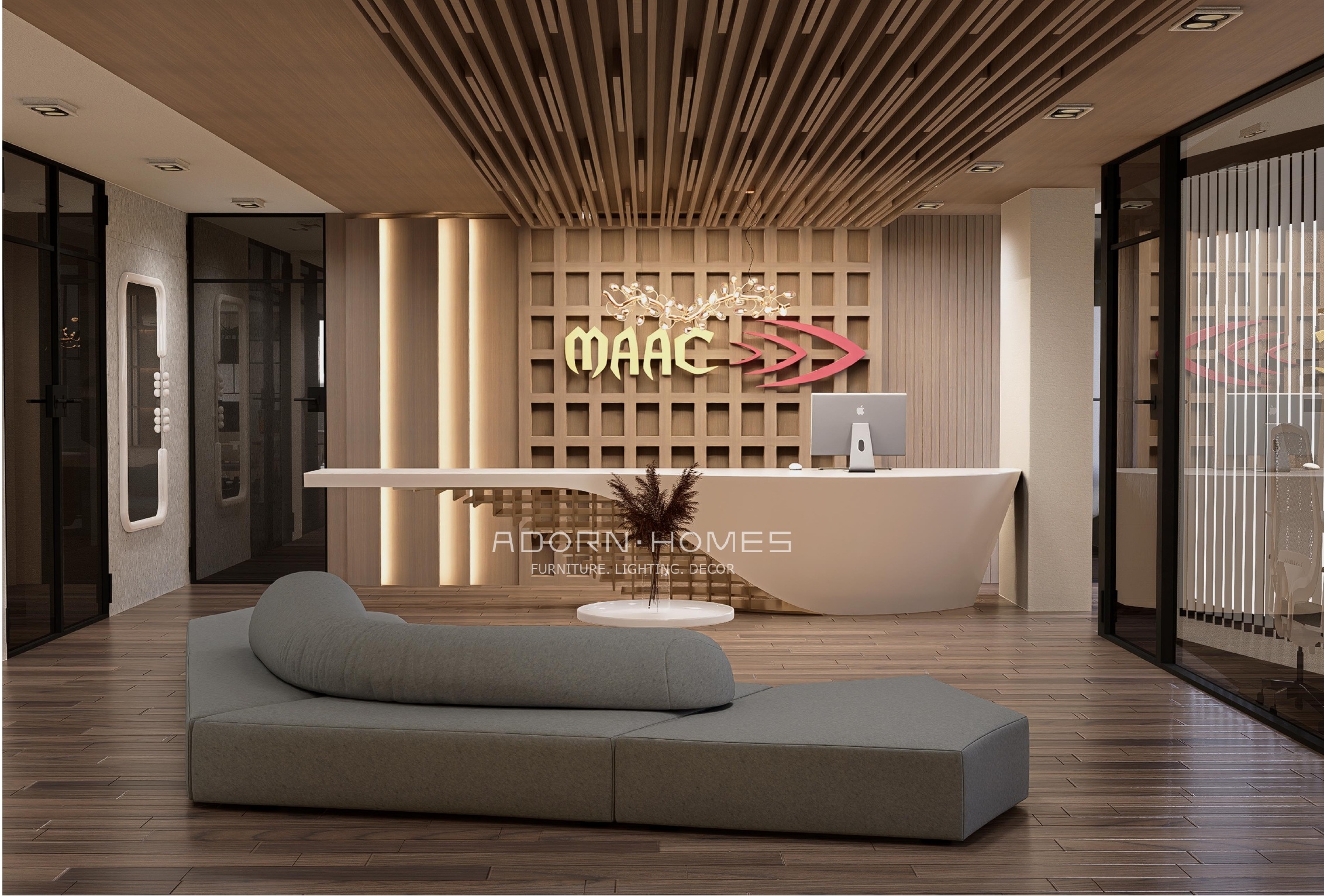 | Project Highlights | 1.Open Space Around 4000 Sqft Complete Our Work In 45 Working Days 2.Custom Furnishing For Educational Setting 3.Glass Partitions 4.Theatre Room With Recliners 5.Class Rooms For 100+ Students 6.Custom Designed Pantry Area 7.Full Length Table Made Of Corian Material For Reception Area 8. Highlighted Back Wall For Reception. |